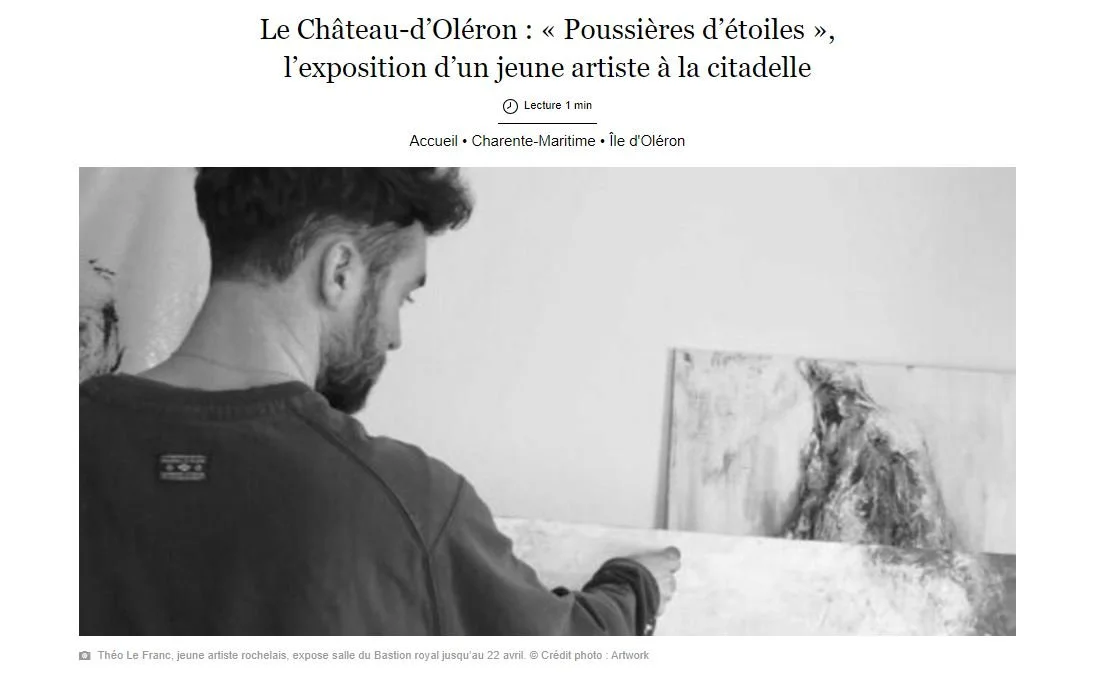 Exposition Poussières d'étoile - SUD OUEST Exposition réalisé au Château D'Oléron dans la salle du bastion Royal. Théo Le Franc9 octobre 2025Le Franc Facebook0 Twitter Pinterest0 0 Likes
